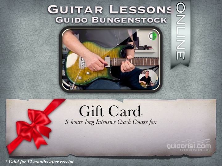 A gift card* for a 180-minutes-long* Full HD Online Guitar Lesson via Zoom® as an Intensive Crash Course.